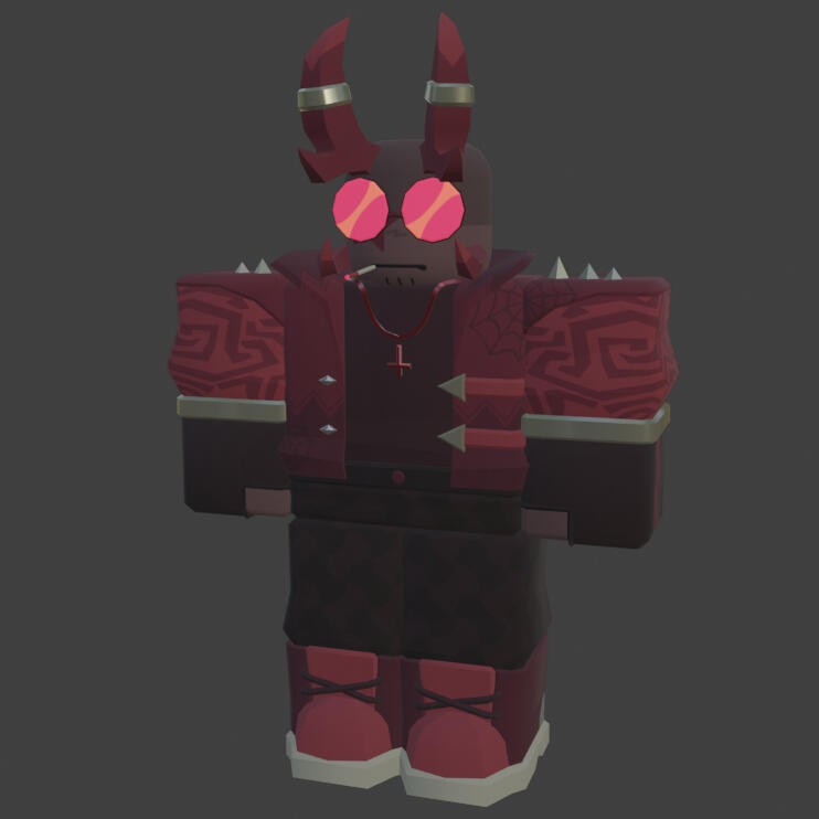 This option includes a model using Roblox's official R6 base. The files to the model will be given if requested, and a render will be made using standard shaders. Textures are done using image maps.You are not strictly required to use the base below for this commission, but you must provide a clear R6 reference with flat colours. I cannot translate humanoid references into R6. Please provide a back reference if there is also a specific design on the back.
